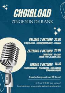 Je kunt ons komen beluisteren op zaterdag 4 oktober om 20 uur in De Rank in Soest tijdens Choirload. Wellicht ben je daarna (extra) gemotiveerd.